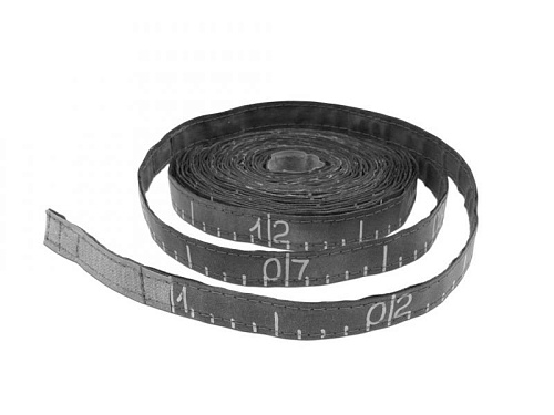 По всей рабочей поверхности внутренней стороны пришита мерительная лента с дециметровой шкалой. Длина указывается вшитыми свинцовыми цифрами, начиная с нулевой отметки. Шаг распределения цифр, соответствуя заказу, может быть равен 5 или 10 см. Согласно высоте цифр определяется ширина мерительной ленты: высота 5 мм соответствует 16 мм ширины, и высота цифр 8 мм – ширине ленты в 20 мм.