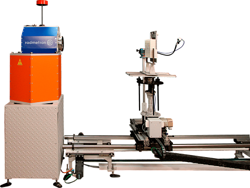 В установке реализуется схема облучения с одним неподвижным многопозиционным облучателем и системой линейного перемещения рабочего стола (СЛП). Изменение значений дозиметрических величин, воспроизводимых в установке, достигается применением источников гамма- излучения различной активности и изменением расстояния между источником и детектором в интервале рабочих расстояний установки. Управление выбором источника в барабане облучателя, выводом выбранного источника в рабочее положение и позиционированием проверяемого прибора в пучке излучения установки осуществляется оператором дистанционно с ПУ установки или при помощи специального метрологического ПО установленного на ПК.